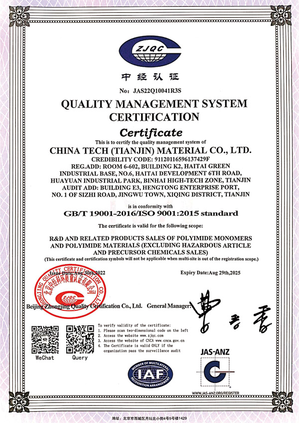 天津眾泰材料科技有限公司(以下簡稱“眾泰”),是一家“以先進(jìn)功能性聚酰亞胺單體研發(fā)生產(chǎn)為核心,致力于推動全球聚酰亞胺材料產(chǎn)業(yè)發(fā)展”為使命的創(chuàng)新型高新技術(shù)企業(yè)。眾泰研制的聚酰亞胺單體目前已廣泛應(yīng)用于無色透明柔性聚酰亞胺薄膜、柔性顯示材料、5G新材料等諸多高科技領(lǐng)域產(chǎn)品的生產(chǎn)。